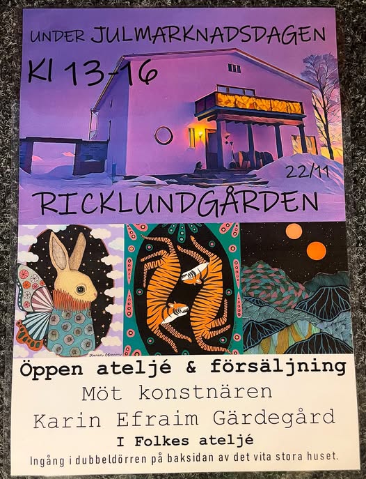 Under julmarknadsdagen i Saxnäs 22 november så bjuder vår fantastiska residenskonstnär @karinefraimart in till Folkes Ateljé!